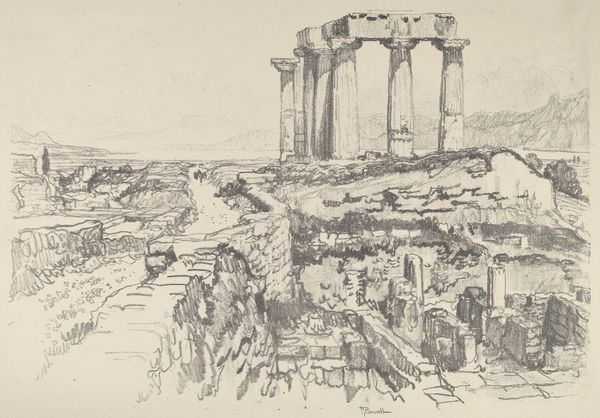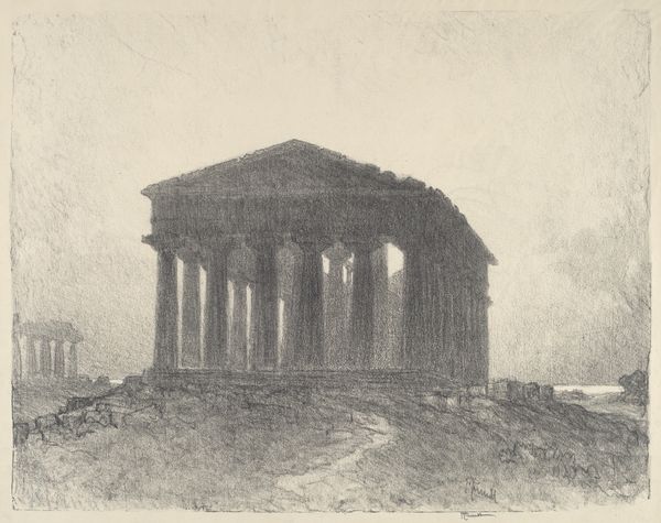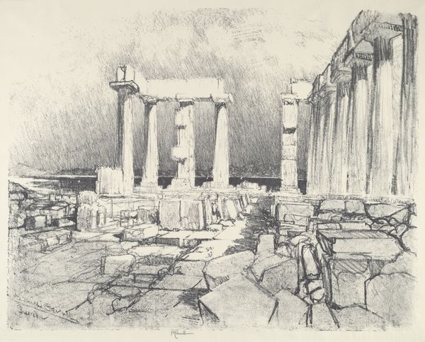 Joseph Pennell made this drawing of the Acropolis from the Temple of Jupiter in Athens with what looks like charcoal or maybe conté crayon. What gets me is the texture, built from all these tiny, crumbly marks. It makes you realize artmaking is a process of layering, of adding and subtracting until the image emerges. Look at how the columns aren't just lines, they're these complex masses built from individual strokes, dense in some areas, lighter in others. Pennell really captures the weight and scale of these ancient ruins. It’s like he's not just drawing what he sees, but what he feels. The way he suggests the sky with these swirling, almost nervous lines reminds me of the German Expressionist woodcuts. You know, there's something timeless about this scene. It makes you think about how artists throughout history have been drawn to these same subjects, each bringing their own vision and mark-making to the conversation. Art is an ongoing exchange, a way of seeing and interpreting the world that stretches across generations.