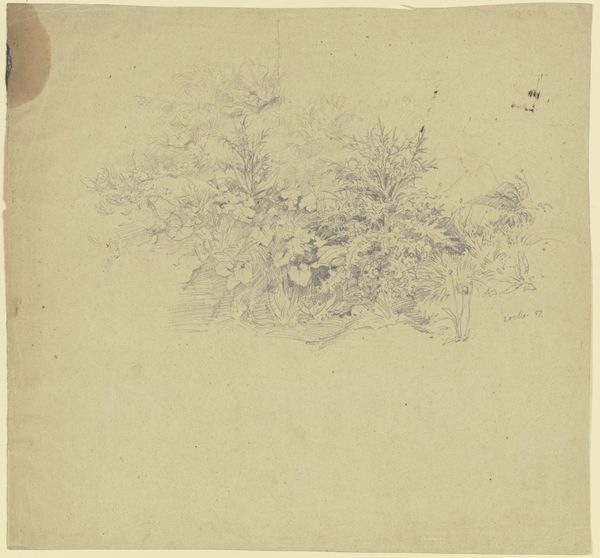 William E. Winner created this landscape study using graphite on paper. Graphite, essentially pencil lead, allowed for a remarkable degree of tonal control. Notice how the artist used delicate lines and shading to capture the scene's atmospheric perspective. The texture of the paper is crucial here. It subtly softens the graphite, giving the image a hazy, dreamlike quality. While seemingly simple, graphite drawings like this one represent a skilled tradition, demanding precision and control. The artist's hand is evident in the varying pressure and direction of the strokes, building up a sense of depth and form. In a time when industrialization was rapidly changing the landscape, Winner's choice of such a direct medium speaks volumes. He seems to be emphasizing the value of individual observation and craftsmanship, perhaps as a counterpoint to the growing dominance of machine production. Appreciating the material and process involved challenges any hierarchy between art and craft.