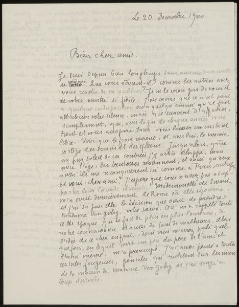 This handwritten letter, titled “Brief aan Héloïse Bernard-Bodin” was created in Le Havre, July 20, 1879 by Emile Bernard. Through his elegant handwriting, Bernard reveals the historical and cultural context of the late 19th century, a period marked by rapid industrialization, social change, and artistic experimentation. The letter format, in itself, suggests a personal and intimate relationship between the writer and the recipient, which allows us to reflect on his emotional state and the impact of his surroundings on his personal life. Bernard shares feelings of melancholy, revealing a sense of unease with the materialism of Europe, which ‘wounds’ him. His desire to live in Egypt signifies a longing for a place where he can connect with nature. Through this letter, Bernard weaves together themes of identity, displacement, and the search for meaning, inviting us to reflect on our own connections to place, community, and self.