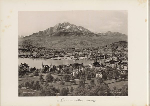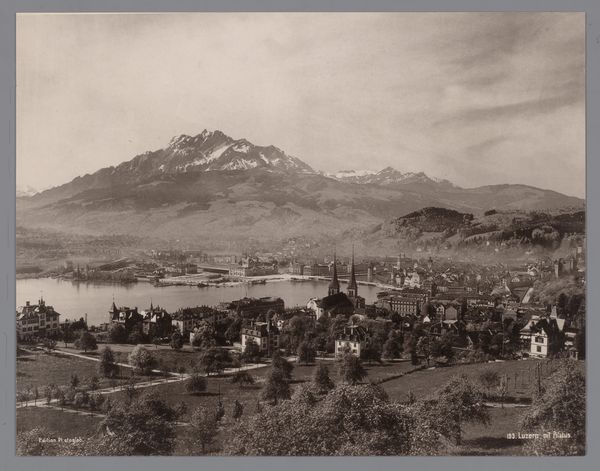 This photograph of Lucerne with Mount Rigi in the background was taken by Photoglob & Co. in 1899. It’s a picturesque view from the Gütsch hill, capturing the city's rooftops, the lake, and the prominent mountain. But this isn't just a simple landscape; it speaks to the burgeoning tourist industry of late 19th-century Switzerland. The detailed rendering of Lucerne and the majestic Rigi catered to a growing market for scenic views. The success of Photoglob & Co. was tied to the rise of tourism, and institutions like hotels and railway companies played a vital role in shaping the public’s perception of Switzerland. To truly understand this image, we must consider the historical context of Swiss tourism, the marketing strategies employed by Photoglob & Co., and the cultural values that elevated the Swiss landscape to an object of beauty. Only then can we grasp the full significance of this photograph.