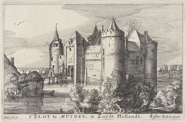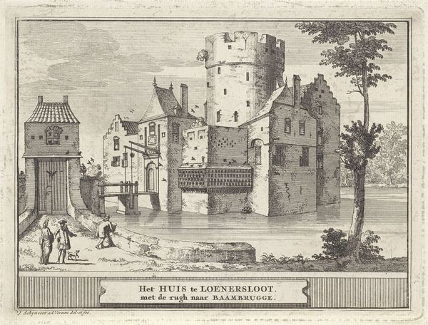 This print of Huis Kronenburg aan de Vecht, was made by Abraham Rademaker in the early 18th century, using etching, a printmaking technique prized for its fine detail. To create this image, Rademaker would have coated a metal plate with wax, scratched his design into it, and then dipped the plate in acid. The acid bites into the exposed metal, leaving behind lines that hold ink. It's a skilled process demanding precision and control – a blend of craft and chemistry. The choice of etching is significant, it allowed Rademaker to capture the textures of the castle's stone walls and the reflections in the water. The print invites us to consider not just the subject matter, but also the labor and skill involved in its production. It's a reminder that even seemingly simple images are the result of complex processes and artistic choices, challenging our notions of both high art and craft.