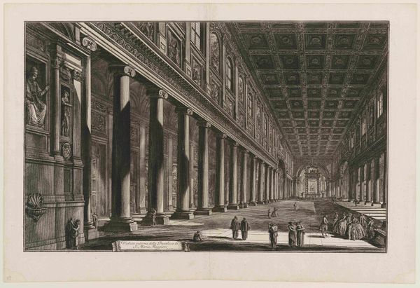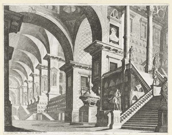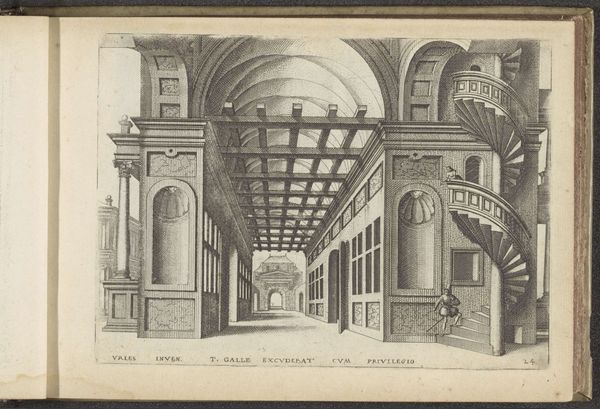 Johannes van Doetecum I created this plate from "Scenographiae..." using engraving techniques. Here, the architectural perspective draws us into a world adorned with classical motifs. Note the herms, those half-human, half-pillar figures standing guard along the colonnade, recalling ancient traditions of marking sacred spaces. The nude figures set within niches carry echoes of classical ideals, yet they also serve as reminders of the human form's enduring presence. The herm, in particular, intrigues me. Rooted in ancient Greece, these figures originally honored Hermes, the messenger god, a protector of boundaries and transitions. Over time, they evolved, appearing in Roman gardens as symbols of virtue and intellectual pursuits. Their recurrence speaks to a deep-seated human need to connect with ancestral wisdom and to find physical representations of abstract concepts. This cyclical return underscores how visual symbols persist and adapt, resonating across generations and cultures.