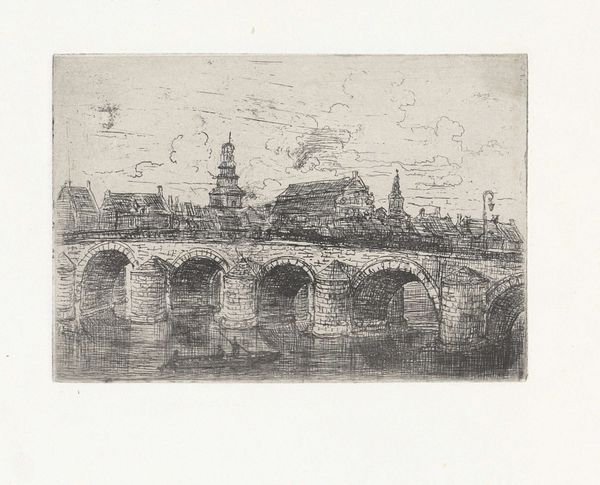 Charles Meryon etched this view of the Pont-au-Change in Paris using the exacting method of etching, a technique that imbues the scene with sharp detail and a sense of timelessness. The bridge itself, an enduring symbol of connection and transition, spans the Seine, inviting reflection on the passage of time. Here, the bridge is not merely a structure but a conduit, a passage between the known and the unknown, the past and the future. Consider the arches beneath—they echo the arches of Roman aqueducts, structures that brought life-giving water to civilizations, a testament to human ingenuity. The river, alive with boats, mirrors life's flow, a theme echoed in ancient mythologies where rivers often represent the boundary between worlds. This bridge, and the structures it connects, remind us that even the most solid-seeming edifices are subject to change, perpetually altered by the currents of time and history. The Pont-au-Change persists as a poignant reminder of humanity’s continuous dialogue with its environment.