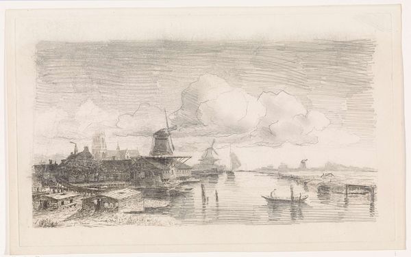 Albertus van Beest created this drawing, "Two Men in a Boat on Calm Water," using graphite on paper. Van Beest, who was born in Rotterdam, lived and worked in a time of significant social change. The drawing depicts a serene maritime scene, with two figures in a small boat surrounded by calm waters and distant vessels. But who are these men, and what does their labor entail? The image evokes the lives of the working class, their livelihoods intertwined with the sea, their social status often rendering them invisible in broader society. What does it mean to occupy a body that is working? What does it mean to have a body that is exposed to the elements, day in and day out? The muted tones and soft lines contribute to a sense of tranquility, yet we must consider the historical context in which Van Beest was working. The artist encourages us to reflect on the lives and labor of those whose stories are often left untold.