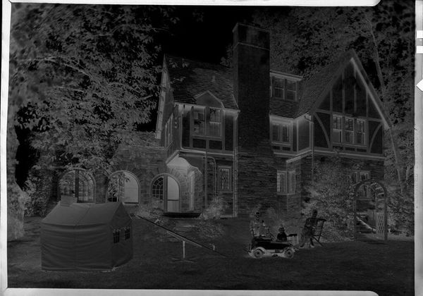 Editor: This photograph, "Untitled (debutante in doorway of house)" by John Howell, is quite striking. It's a small black and white print and possesses an ethereal quality. What symbols do you observe in it? Curator: The doorway itself! Throughout history, doorways represent transition. Here, it frames a young woman, perhaps at the threshold of adulthood. Notice how the house is solid, representing societal structures, while she stands at the edge of a new personal journey. Editor: So, the house embodies tradition, and she's on the cusp of change? Curator: Precisely. The image plays with the tension between conformity and individual aspiration. What new insights can you gather from this? Editor: I hadn't considered the doorway as a symbol of transformation before. This gives me a lot to think about.
