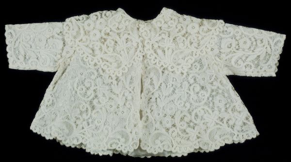 Curator: This lovely textile work is titled "Sjaalkraag met blaadjesrand van kloskant," or "Shawl Collar with Leaf Edge of Bobbin Lace." It's estimated to be from around the 1920s and its craftsmanship certainly aligns with the Arts and Crafts movement. Editor: It strikes me as something almost ethereal. The sheer fabric and delicate lace evoke a sense of fragility and refined elegance. Is there a story behind the leaves incorporated in the pattern? Curator: In the visual language of the period, natural motifs symbolized renewal and connection to the earth. The leaves would be intended to carry notions of life, growth and beauty – highly appropriate for something worn close to the body. Editor: That adds a poignant layer. I find myself wondering about its creator and the intended wearer. Who would have crafted such an exquisite, delicate thing? And in what context would someone have chosen to adorn themselves with it? Curator: The Arts and Crafts movement embraced the value of the individual artisan. Each piece had the mark of its maker, standing in opposition to mass production. As for the wearer, she would likely belong to a social class that valued both beauty and artistry. Lace has long been a symbol of status. Editor: The very act of making lace is steeped in social history. Remember that many lace makers faced financial difficulties, even exploitation. A collar like this might be a sign of their skill, yet their own living conditions might be far removed from the luxury it represents. Curator: That's an astute observation. It does make you consider the complex relationship between art, labor, and social status in the early 20th century. Items like these allow us a material link to understanding class distinctions and labor histories. Editor: Thinking about it, that tension – the delicate beauty born from skilled but sometimes exploited hands – creates a powerful dichotomy. That it is textile work also speaks to notions of the feminine and the domestic and questions of how labor is valued even today. Curator: The intricate details in the bobbin lace demand closer viewing. In the end, these handcrafted adornments tell us a great deal about social aspirations, design movements, and the lives of ordinary artisans and wearers. Editor: A beautiful object that reflects light in ways both literal and figurative, and which opens pathways for social history and human stories to come alive.