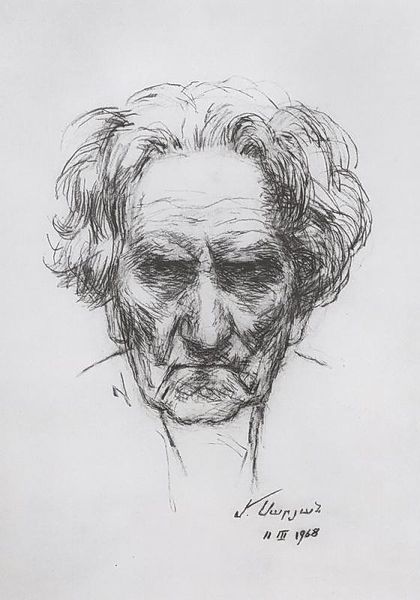 Editor: This is Michael Mazur's "Self Portrait". It's a charcoal drawing, and it has this stark, almost confrontational feeling. What do you see in this piece? Curator: It strikes me as a powerful commentary on aging and vulnerability. Mazur's choice of charcoal, with its potential for both delicacy and harshness, underscores the complexities of self-perception. It invites us to consider the social pressures around visibility and representation. Editor: So, you think the medium enhances the message? Curator: Absolutely. Charcoal becomes a tool to dissect and question patriarchal expectations of male portraiture. It's a deliberate act of defiance against idealized representations of the self. What do you think about that? Editor: I think I hadn't considered the social commentary within the gaze itself. It's like he's challenging us, and himself. Curator: Exactly. It is a powerful testament of the intersections of art, identity, and social critique.