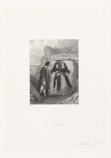Curator: Here we have Eduard Kretzschmar's "Aus Koenig Friedrichs Zeit: Belling," an undated print now residing at the Harvard Art Museums. Editor: My first impression is somber. The subject, rendered in monochrome, seems burdened by his elaborate attire, doesn’t he? Curator: Elaborate indeed! Notice the texture – the etching technique allows us to appreciate the weight of the fur, the stitching on the coat, even the plumes atop his headgear. This speaks to the means of production inherent to representing power. Editor: Absolutely. The high hat, the fur trim, the suggestion of soldiers behind him, it all points to a very specific cultural memory of Prussian militarism and authority. Curator: It's fascinating how Kretzschmar uses material detail to evoke a sense of the past, and the labor required to manifest this past. Editor: I find myself wondering what Belling represents here - perhaps a father figure, or the stern face of a bygone era? It's a powerful image, rich with historical weight. Curator: A powerful and weighty image, indeed, highlighting the importance of acknowledging labor and materiality. Editor: Yes, leaving us to ponder the burdens of history that symbols so often carry.