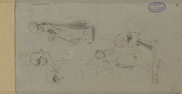 Editor: This pencil drawing, “Vrouwen aan het werk op het land,” created by Willem Witsen around 1888, has such an understated quality. The figures are almost lost in the vastness of the landscape. What can you tell me about this piece? Curator: It's important to consider Witsen's position within the art world and broader social shifts. This was a time when artists were increasingly engaging with social realism, depicting everyday life and labor. How does this sketch engage with the social realities of rural women working the land? Editor: It's not romanticized, is it? These women seem small against the field, anonymous almost. There isn't anything classically beautiful. Curator: Exactly. It seems that Witsen uses the impressionist style almost as an attempt at documentation. Instead of idealizing rural life, Witsen offers a glimpse into the often-unseen labor of women. It moves from an image, and creates an engagement in politics. Who does this piece, and its creation, seek to affect? Editor: That's interesting, thinking about it as a political statement through observation. It makes me appreciate the apparent simplicity even more, given the underlying narrative. Curator: The art world is never really neutral, is it? These are all cultural statements which should invite discussion in our perception, no matter the art. Editor: Definitely something I’ll consider going forward; seeing beyond what is right in front of me. Curator: A great skill when encountering art, wouldn't you agree?