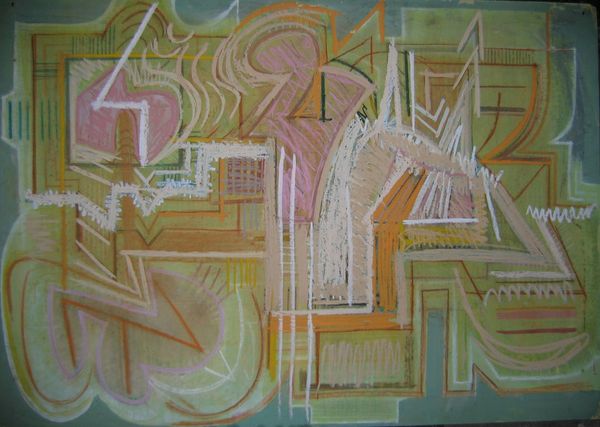 Curator: Vilhelm Lundstrom’s "Composition I," from 1918, presents an intriguing mix of media, including oil paint and collage elements. Editor: Immediately striking is the piece’s muted, almost melancholy, palette and its textured surface; a clear embrace of Cubist abstraction. The geometric fragments seem to hover in a space that is neither entirely flat nor realistically deep. Curator: Lundstrom was part of a generation grappling with rapidly changing modes of production. We see evidence of this interest in his approach here: the rough texture of the canvas, juxtaposed with pasted elements, forces us to consider the means of its making. The collage disrupts any easy illusionism. Editor: But the fragmented forms also speak to a fractured world, echoing the anxieties of the time. Doesn't the stark contrast of the cool greys against the bursts of red and yellow evoke a sense of disruption or perhaps even impending conflict? It has almost a warning embedded in its iconography. Curator: Possibly. However, I am interested in considering how this collage work fits within Lundstrom's artistic journey. It could be viewed as a rebellion against established aesthetic conventions. A democratizing approach, maybe even questioning the preciousness associated with painting. Editor: The dots. Look at how frequently Lundstrom deployed dots. Could this be the artist's fascination with patterns, as a universal visual language transcending cultural barriers? Are the forms mere aesthetic arrangements, or are they echoes of recognizable objects and experiences, translated through a personal symbolic lens? Curator: Interesting speculation. Perhaps, by embracing mixed media and seemingly mundane materials, Lundstrom aimed to dismantle established hierarchies. This move can be interpreted as an elevation of craftsmanship alongside more "refined" art forms. Editor: Indeed, each piece becomes a trace of a past event, charged with a cultural weight we decode to connect with our world. A beautiful, sobering reflection on a society grappling with its future. Curator: Precisely. Looking closer at "Composition I" unveils how Lundstrom challenged us to consider not only what art represents, but also how it's constructed, consumed, and circulated.