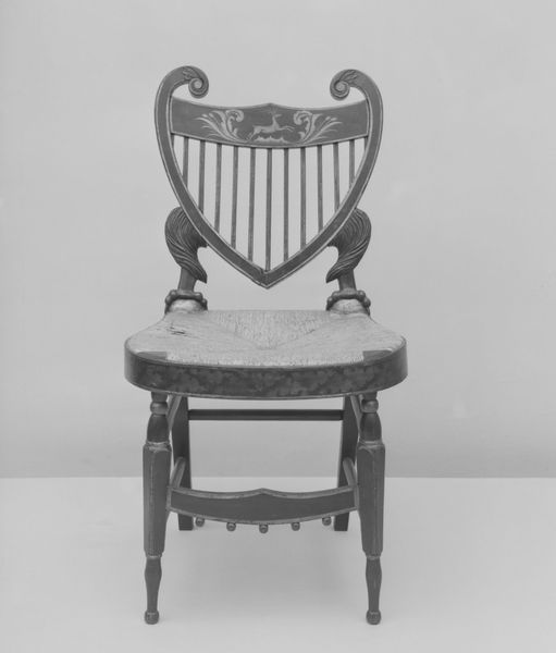 Editor: Here we have the “Chamber Organ,” crafted between 1835 and 1870. The craftsmanship of the wood is striking. How would you begin to interpret its design and construction? Curator: Let’s focus on the formal elements first. Notice the interplay of vertical lines established by the pipes, echoed by the slender fluting on either side, creating a unified visual rhythm. The geometric order imposed on the materials—the polished pipes versus the darker carved wood—provides a fascinating dialogue between contrasting textures and tones. Editor: Yes, I see the contrast you’re pointing out. How does this interplay impact the overall composition? Curator: The composition relies on this careful arrangement, emphasizing verticality and symmetry. However, the carved detailing on the supporting legs offers a delightful counterpoint, introducing organic forms to interrupt the severe geometry. This deliberate disruption enlivens the structure, preventing it from feeling static or purely functional. Editor: That’s an interesting point. I hadn’t considered the disruption as a conscious decision. Is there significance in the particular placement of the carvings? Curator: Precisely! Their placement anchors the form, visually grounding the instrument. It elevates it beyond mere utility. Note, also, how the decorative elements draw the eye downward, creating a sense of stability. Editor: So, the strategic carving creates visual balance. Fascinating. Curator: Indeed. The carver’s treatment suggests a clear emphasis on both structural and decorative function; the result transcends the pure mechanics of the organ. Through carefully controlled forms, a dialogue arises between line, shape and texture—between artifice and materiality. Editor: It’s so helpful to analyze the different visual elements and see how they create something so dynamic. Thank you! Curator: My pleasure. It shows that engaging with forms opens the door for meaningful reflection and the possibilities for a rich, aesthetic journey.