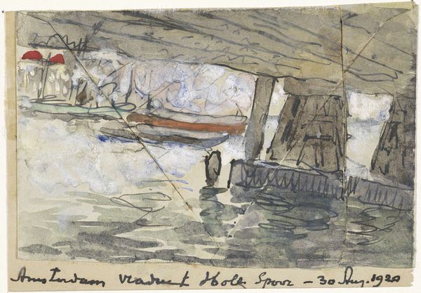 Curator: We're now looking at "Ships near the Trieux River," a watercolor created by Paul Signac in 1925. The scene captures boats in a tranquil harbor. What strikes you when you first view this artwork? Editor: Initially, I'm captivated by its light touch. The watercolor medium lends a certain ephemeral quality. The color palette is muted, almost dreamlike, yet the touches of bold color are so compelling. There's a balance that makes it seem very calm. Curator: That’s an insightful observation. Signac, known for his role in the Pointillist movement, transitioned here to a more fluid, expressive style while remaining faithful to depicting contemporary life, moving from urban scenes in Paris to smaller towns like this one, offering insights into the development of a regional French identity. It marks a significant shift in his oeuvre, signaling a growing interest in the nuances of local culture and environment. Editor: It feels like a departure. We still see his attention to the division of color, but now in this softer form. How do you think his aesthetic choices serve particular agendas of his time, especially considering the post-war era? Curator: I find it especially revealing that he chose this scene. Consider this town after the first world war: depicting maritime spaces was so much more than depicting recreation, right? This work displays the slow return to normalcy, which is in contrast to much more radical aesthetics developing around that period. His works helped to construct and support the image of France that still remains as a popular vision today. Editor: Absolutely. Signac isn’t just capturing a scene. It is actively participating in defining the national image for the world. So this is about creating an appeal by using impressionist tropes of leisurely daily life—how does that impact different segments of French society? Whose perspective is not represented here? Curator: That's crucial to acknowledge, the perspectives omitted contribute significantly to understanding the image and what it means to look at. Editor: What a striking view on how to reconsider these historical works of art. Thank you for contextualizing that with me. Curator: It’s always important to think about. I learned from you just now, as well!