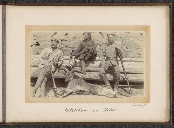 Curator: Sobering, isn't it? This is Alexander Gardner's 1862 photograph, "Lieutenant Washington, a Confederate Prisoner, and Capt. Custis [sic] (for Custer) U.S.A.," now held at the Metropolitan Museum of Art. A gelatin-silver print... it speaks volumes about power and perspective during the Civil War. Editor: Absolutely. It's got this stark stillness to it. Three figures, yes, but caught in a kind of heavy, quiet tableau. I find myself just staring into their eyes, wondering what the air felt like that day. The air of war, the air of defeat. It’s as heavy as lead. Curator: Precisely. Consider Gardner's position; a photographer documenting the war, often embedding with Union forces. These images were circulated widely, shaping public opinion. A captured Confederate officer is positioned subordinate to the Union officer and the other man there who appears to be enslaved, really illustrating the Union’s perspective on the rebellion. Editor: Right. You’ve got Capt. Custer, looking pretty self-assured; Lieutenant Washington, the defeated Confederate… But that other individual there...his downcast gaze just hits me. I mean, his very position at the feet of the others… There’s a palpable story of vulnerability there, of what it meant to be caught between armies, between fates. Curator: And that’s where the photo complicates itself. Gardner provides this depiction of the subjugated Confederacy through these figures, but also raises these difficult questions about the experiences and status of enslaved people, as well as the future status of formerly enslaved people as the war continues. Editor: It gets to me how Gardner composes this image. That stark contrast between the crisp uniforms of the officers and the...the utter simplicity of that man’s clothes, that sense of quiet despair in his posture. It just underlines the injustice and inequity. He makes you feel the human cost beyond the political spectacle. Curator: It is a pointed tableau for its time. Photos such as these helped solidify the Union narrative, they also revealed many troubling undercurrents concerning race, slavery, and social power. Editor: Well, Gardner certainly gave us more than just a war photo, didn't he? He gifted us this layered meditation on war, power, and human dignity, even in its most precarious states. Makes you think. Curator: Indeed. It is a complex intersection of history and humanity caught in a single, still moment.