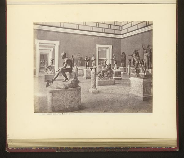 Editor: So, this photograph by Alexander Gardner, taken in 1868, depicts Thaddeus Stevens Lying in State. The stark, grainy quality of the gelatin-silver print lends a somber tone, like looking into a faded memory. What significance do you see in the way Gardner chose to portray this scene? Curator: The visual language is fascinating. Consider the statue looming in the background versus the very grounded reality of the coffin. Note the groupings of figures and their relationships to one another and the foreground elements. What feelings do those things provoke in you? Editor: It’s striking how the statue represents legacy, a kind of permanence, while the coffin signifies mortality. There is almost a contrast in visual weight. Also, there are many armed men near the statue but are not prominently seen by the casket. Why? Curator: Precisely! Consider Thaddeus Stevens’ role in Reconstruction. Those rifles leaning on the statue's pedestal serve as potent symbols of the force required to uphold his vision of equality. Stevens fought bitterly for it and they are an interesting symbol of the price to make his vision come to reality. Editor: It's interesting how even in death, his legacy seems to be defended, enshrined. And that the visual arrangement does more to memorialize Stevens himself than just show his burial. It is also thought provoking as well! Curator: Yes, this image works on several levels simultaneously. It presents death, but more strongly conveys Stevens' lasting ideals and the fierce resolve needed to protect them. Through the lens of time, that makes one ponder the success of Reconstruction and that price that may have ultimately been paid. Editor: It truly gives a new dimension to understanding not only a historical moment but also its lasting resonance and possible visual cues regarding it. Curator: Exactly! It makes you wonder, "How might future generations interpret this imagery?", cementing the place for this moment in the theater of American political imagination and memory.