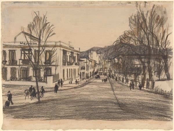 Henry Rushbury created "S.S. Quattro" with graphite on paper, a traditional combination for capturing the world with immediacy. But don't think that because it's just pencil on paper, there is nothing more to it. Look closely at the marks, and the pressure Rushbury exerted through his hand. See the details emerge – the architecture, the figures, the trees. He used a range of hatching techniques and careful rendering. The density of the graphite builds volume and shadow, giving a sense of place and atmosphere. The medium lends itself to on-the-spot observation; this drawing is a record of a particular place and moment in time. There is an intimacy in the process, like keeping a diary. So, while the material is simple, the skill and artistic vision transform a humble medium into a telling document. It shows how attention to materials, making, and context expands our understanding of the artwork.