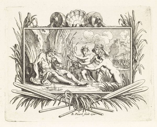 Curator: Let’s delve into this print, “Musicerende figuren zittend rond een tafel” by Michel Aubert, created in 1731. It’s an engraving with distinct Rococo and Orientalist influences, currently residing here at the Rijksmuseum. Editor: My first impression? Tranquil, but with a touch of staged drama. Like a perfectly curated tableau vivant. The light is gorgeous, almost theatrical, casting soft shadows across the scene. Curator: The “tableau vivant” aspect resonates, given the period's fascination with constructed identities. Orientalism was, after all, a Western lens projecting fantasies onto the East. The sitters gathered round a table feel less like a casual scene and more like characters in a carefully designed performance. The very title emphasizes their attire. Editor: Absolutely! Look at their faces: enigmatic smiles that say less "joyful gathering" and more "posing for the artist." I feel like I’m observing a meticulously constructed dream – delicate and otherworldly, but possibly fleeting. It is a scene of harmonious, peaceful engagement, yet detached at the same time. Curator: That detachment speaks volumes about the power dynamics at play. European interpretations often lacked genuine engagement with the complexities of the cultures they depicted, reinforcing skewed images of non-Western people. How does this awareness reshape our encounter with Aubert's print? Editor: It prompts a lot more questions about the true context here! This artwork becomes like a conversation, not a one-sided statement, and my reflection makes me curious and drives me to engage more. This peacefulness might be a front. What is happening underneath? Curator: The presence of children here is particularly significant; one even seems to be engaged in some form of music-making with a hand drum or rattle, which tells of social norms. How were they being framed, presented to this European gaze through these exotic settings? Editor: Good question. And there is also an interesting contrast in tonalities between the characters. This creates a contrast between light and darkness; that's what drew me in. But after thinking about it and going deeper into context, my thoughts resonate with these darker underlying historical facts. What looks pleasant, at first glance, invites me to question every assumption. Curator: It does make you ponder over what elements are amplified and what stories remain silenced. Thank you for adding a voice that amplifies critical inquiry with genuine artistic sensitivities. Editor: Always! Finding deeper meaning beyond beauty—that's the rewarding part for me. Thanks for leading me!