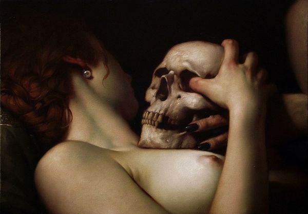 Siegfried Zademack, born in 1952, created “Der Innere Dialog”, or “The Inner Dialogue,” though the date remains unknown. The painting invites us to a timeless reflection on mortality, beauty, and identity. In the artwork, the artist places a mannequin in the center, flanked by symbols of life and death: a nude woman on the right and a figure shrouded in white on the left, with a skeleton looming behind the mannequin. Zademack seems to suggest the complexity of human consciousness, caught between the physical world and the inevitability of death. As cultural theorist Stuart Hall once noted, identity is not fixed but is instead a process of becoming. "Der Innere Dialog" isn't just a scene; it’s an emotional and intellectual challenge. It reminds us that we are all, in a sense, works in progress, negotiating our identities within the dialogues of life and death. Zademack's work encourages us to confront these dialogues, and perhaps find a deeper understanding of ourselves in the process.