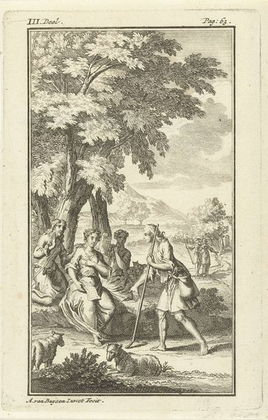 Editor: Here we have "Children Playing with Whips," an engraving by Zacharias Chatelain II, dating back to 1712. It’s a busy scene; the mood seems rather fraught. What do you see in this piece, considering its historical context? Curator: Immediately, I’m drawn to the normalization of violence enacted by children. In the context of 18th-century Dutch society, this work isn't merely a depiction of childhood play. It reflects broader societal structures of power and discipline. Editor: Power dynamics in play... intriguing. So you’re saying there’s a message embedded beyond the surface level depiction? Curator: Precisely. Consider how these children, wielding whips, mirror the disciplinary power adults exerted over them and, by extension, the lower classes and marginalized communities. Who is being watched from the building on the right? Is there a connection to those being “whipped”? Editor: I notice a woman is in a balcony as the main action unfolds, so perhaps those playing hold no real authority, but rather reflect a societal issue. Are you pointing to the etching functioning as a social commentary, suggesting these power structures were being internalized and replicated at a young age? Curator: Exactly. It's a poignant commentary on the cycle of violence and the ways in which social hierarchies were perpetuated. The piece forces us to confront uncomfortable questions about how we raise children and the values we instill in them. Ultimately, how do we break the cycle? Editor: Thank you! I am understanding how art serves not only as record, but a point for introspection on culture and humanity. Curator: Absolutely! Keep questioning what is presented as ‘normal,’ and explore how art can unveil the hidden truths.
