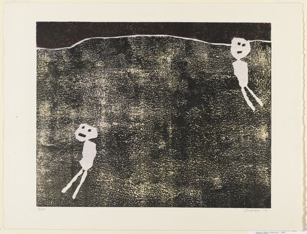 Editor: Here we have Sanyu’s "Pink Leopard," painted around 1940, it looks like with oils on canvas. I am struck by the contrast – this delicate, almost decorative leopard floating above what seems like an abyss. What is your read on this peculiar piece? Curator: What I see immediately is the manipulation of material to create social commentary. Notice the layered paint application. Sanyu is literally building up and then scraping away at the surface, isn’t he? This reveals the tension between the supposed luxury implied by the pink leopard and the harsh reality of existence. Editor: I suppose that tension is present in the stark color palette too. But, decorative aside, why a leopard? Curator: The leopard, traditionally a symbol of wealth and power, becomes almost ghostly in Sanyu’s rendering. Consider the materials again – inexpensive oils likely, consciously deployed to mimic finer porcelain. He's cleverly subverting traditional art historical tropes through the very act of painting, commenting on the socio-economic disparities of his time. Where do you think that idea of performance factors into it? Editor: Hmm, a performance of wealth through a common medium like oil paint. So, the material itself is part of the message. That’s quite powerful. It certainly gives me a lot to consider about value and perception in art. Curator: Exactly. By paying attention to the artist's choices – his materials, techniques, and the context in which he created the work – we can unlock richer meanings and engage with the artwork on a deeper level. I find that so valuable, what do you think? Editor: I absolutely agree. Shifting my focus from the image to the way it was made, and how materials are commenting on society, really opens up the narrative. Thanks!