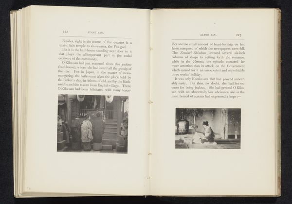 Curator: Here we have a photographic print by William Kinnimond Burton, entitled "Vrouw naast een houten pilaar," placing the artwork likely before 1892. It’s a gelatin silver print. What are your initial thoughts? Editor: Stark. The high contrast of the gelatin silver emphasizes the textural qualities, and creates a dramatic study in light and shadow. The rough-hewn texture of the wooden pillar suggests manual labor. Curator: Indeed. Note the intersectional aspects of the figure and the column in relation to Japanese societal norms of the time. The subject's positioning suggests a possible constraint or perhaps reliance. Editor: The column's function intrigues me—what is its purpose structurally? The means of procuring the wood to make it could represent many different activities within local economies and resource allocation. How did it contribute to shaping socio-economic practices in that area? Curator: That's a great point. Considering gender within labor systems gives added weight. How would a woman within the historical context have been seen to interact with this architectural element in particular? This photographic rendering makes its appearance in a novel, giving another dimension to the column in how it reflects supporting infrastructure of colonial Japan. Editor: Precisely. In studying the materials and composition, we understand this labor's representation more comprehensively. This photograph's very creation through photography also embodies certain colonialist power dynamics. Curator: I concur; this approach reveals significant nuances of both its construction and context. Examining it through intersectional narratives adds much depth to how we receive its message, highlighting gender, and power structures implicit in the depiction. Editor: The material properties open a window to wider economic relationships, illuminating the structures and practices impacting its time. It gives such an interesting dimension.