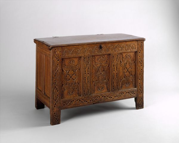 This oak chest was crafted by William Searle, likely during the 17th century, and now resides at the Metropolitan Museum. Its panels burst with stylized flora, motifs that reach far back into the mists of human expression. What we see here are not mere decorations, but symbols laden with meaning. The tree of life, prominently featured, echoes through cultures, representing growth, connection to ancestors, and the very essence of vitality. Think of the ancient Egyptian Tree of Life, linking the earthly and divine realms, or the Norse Yggdrasil, its roots binding together the cosmos. The tree’s persistent reappearance speaks to a deeply ingrained human need to visualize our place in the world, our connection to the past and future. This chest whispers of these ancient longings, engaging our subconscious on a profound level. The motif's journey—from sacred symbol to decorative element—illustrates the cyclical nature of cultural memory, constantly evolving, yet forever tethered to its origins.