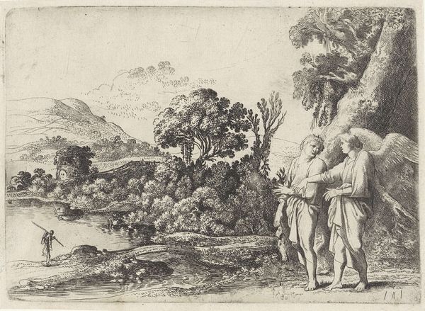 This etching, "Tobias heals his father's blindness," was made by Moyses van Wtenbrouck in the 17th century. Look closely and you'll notice it's made up of thousands of tiny lines incised into a metal plate. This was achieved through a labor-intensive method. The metal plate is covered with a waxy substance, through which the design is drawn with a sharp needle-like tool. The plate is then immersed in acid, which bites into the exposed lines, creating grooves. These grooves hold the ink, which is transferred to paper under great pressure. This process demanded skill and precision. It allowed for the creation of multiple impressions, democratizing images in a way previously unimaginable. The fine lines evoke a sense of detail and atmosphere, highlighting the texture of the landscape and the emotional weight of the scene. Understanding the etching process allows us to appreciate not only the final image, but also the labor, craft and ingenuity that went into its making. It blurs the boundaries between art and craft, highlighting the value of skilled handwork in art history.