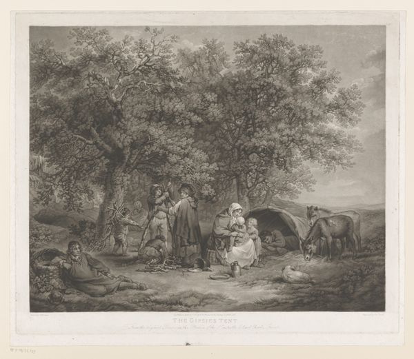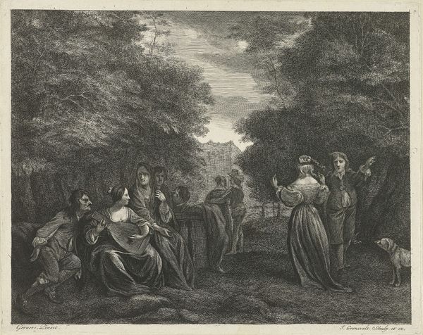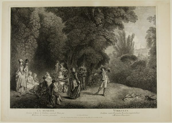 Albert Henry Payne created this engraving, Fête Champêtre, sometime in the 19th century. It captures a scene of leisure, with figures gathered in a park-like setting. Dominating the composition is a classical statue of a woman and child, reminiscent of Greco-Roman ideals of beauty and virtue. This idealized vision of pastoral life and maternal love echoes throughout art history, reappearing in Renaissance paintings and later Neoclassical sculptures. The statue is a vessel that evokes a sense of timelessness. The scene is imbued with a yearning for a Golden Age, a concept that permeates the collective unconscious. Consider how the notion of Arcadia, a utopian vision of pastoral harmony, has been revisited and reshaped across centuries. The subtle tension between the statue and the living figures creates a psychological resonance. The emotional power lies in the silent dialogue between the ideal and the real, between the enduring symbol and the fleeting moment. This image reflects a cyclical return to classical ideals, demonstrating how these forms and their meanings are continuously reinterpreted in response to changing cultural landscapes.
