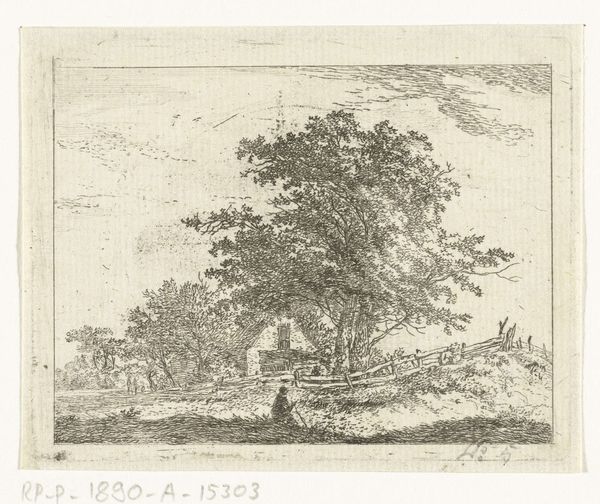 This landscape, by Hermanus van Brussel, is an etching on paper. Now, that might sound straightforward, but consider what’s involved. Etching is an indirect process. First, the artist coats a metal plate with a waxy, acid-resistant ground. Then, using a needle, they scratch away lines to expose the metal beneath. The plate is then immersed in acid, which bites into the exposed lines, creating grooves. The plate is inked, the surface wiped clean, and the ink remaining in the grooves is transferred to paper under high pressure, through a printing press. This method allows for incredibly fine detail, visible here in the foliage of the trees and the figures near the farmhouse. It's a labor-intensive process, requiring skill not only in drawing, but also in chemistry and mechanics. Prints like this were relatively affordable at the time, expanding access to art beyond painting for a growing middle class. So, think about this when you look at this etching: it is an artwork deeply embedded in the era’s changing social dynamics and emerging industrial processes.