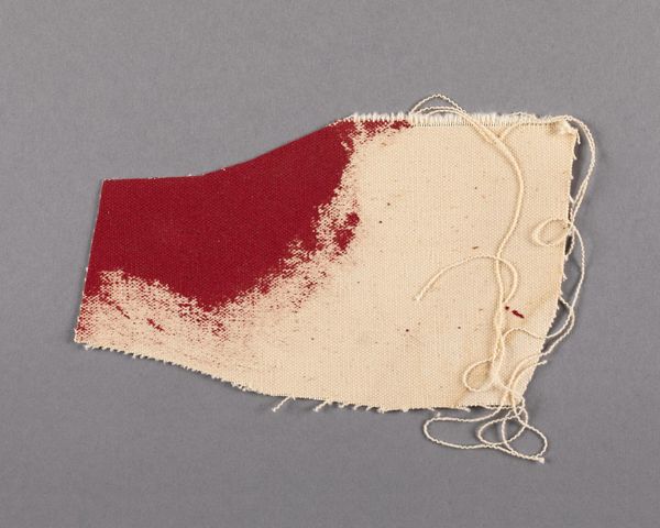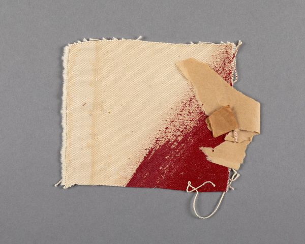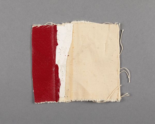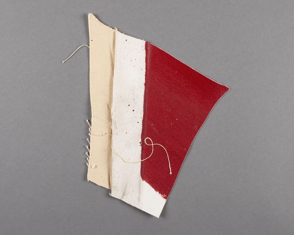 Editor: Here we have Barnett Newman's "Painted canvas fragment." I'm struck by its raw quality. It's small and unassuming, yet the stark division of color is quite powerful. How do you interpret this work? Curator: I see a potent symbol of fractured narratives. The canvas, a remnant, speaks to the incompleteness of history, particularly marginalized histories. The red, juxtaposed against the white, hints at the violence inherent in creating these divisions. Editor: Violence? I hadn't considered that. Curator: Think of the period Newman was working in, the Cold War, the Civil Rights movement. Art became a battleground. What stories are being cut off? Editor: It's a small piece, but it holds a lot of weight. Thank you. Curator: And thank you for bringing your perspective. It enriches the experience.