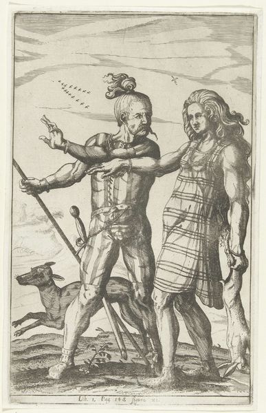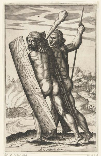 Nicolaes van Geelkercken made this print of two warriors in bear pelts using etching, a printmaking technique which relies on acid to cut lines into a metal plate. The plate would have been inked and then printed onto paper. Look closely, and you’ll see the crisp lines that define the figures’ muscular bodies and the texture of the bearskins. These are achieved by drawing through a waxy ground applied to the metal, exposing the metal. When the plate is submerged in acid, the exposed lines are eaten away. The longer it sits in the acid, the deeper and darker the lines become. This process demands planning and control. Consider how the artist uses the etching to create a detailed surface: look at the areas of shading, built up through layers of tiny, closely-spaced marks. This not only adds depth but also a tactile quality to the image. Ultimately, recognizing the labor involved in this relatively modest print encourages us to look beyond the image itself, and to think about the skilled making that underpins it.