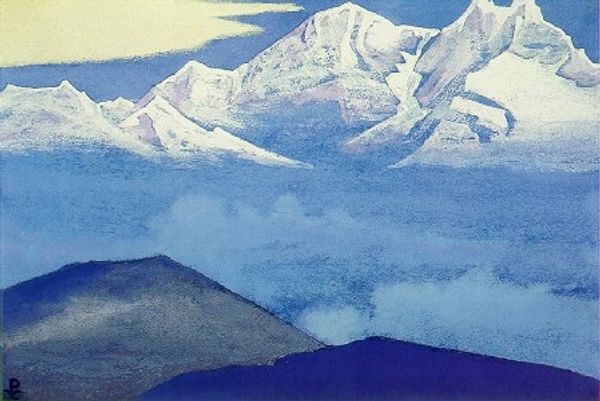 Nicholas Roerich’s ‘Himalayas’, located here in the Roerich Museum in Moscow, presents a majestic mountain range rendered in cool blues and whites. The composition is structured around a central peak that dominates the visual field, evoking a sense of awe and contemplation. Roerich’s brushstrokes are deliberate and bold. These visual elements are not merely representational but carry symbolic weight. The interplay between light and shadow on the mountain faces creates a dynamic contrast. It is designed to draw the eye upward, inviting viewers to consider the spiritual significance of the natural world. This painting reflects broader philosophical concerns about the relationship between humanity and nature, often linked to Roerich’s interest in theosophy and Eastern spiritual traditions. The formal qualities of the artwork serve as a visual metaphor for deeper cultural and philosophical discourses. It destabilizes the viewer's expectations of landscape painting. The artwork prompts ongoing interpretation and re-interpretation of our place in the universe.