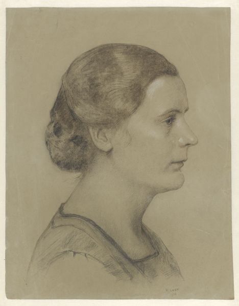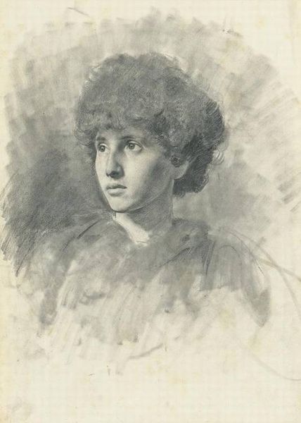 Editor: This is Aydin Aghdashloo’s 1990 charcoal drawing, "Cover Design, Unpublished, Portrait of Virginia Woolf." It’s so delicate; the lines are faint and there’s almost a ghostly quality. What stands out to you? Curator: The unfinished quality resonates deeply, almost as if the image is emerging from the depths of memory itself. It speaks volumes about Woolf, a figure so strongly associated with interiority. Note how her gaze is directed inward, her profile turned away from us. Editor: Yes, she looks almost melancholic. Curator: Indeed. But it goes beyond simple sadness. Her averted gaze and the tentative lines might suggest the fragility of consciousness itself. Consider the symbolism of the averted gaze; it can indicate both vulnerability and a desire for privacy. The artist hints at an emotional and intellectual landscape both intensely personal and profoundly influential. Editor: So the incompleteness emphasizes her internal world? Curator: Precisely! The unformed elements surrounding her face act almost as a veil, as if to say that the essence of Virginia Woolf remains tantalizingly beyond our grasp. The cultural memory associated with Woolf is her brilliance, but also her struggles with mental health, wouldn’t you agree? Editor: That's true, I see that now. This wasn’t just a likeness; it’s loaded with meaning. Curator: Art, like memory, often resides in the realm of suggestion. And I see that it's been understood that a portrait can suggest many things, some beyond words. Editor: I’ve learned so much about how an image, even seemingly simple, can carry so many complex layers of cultural and emotional weight.