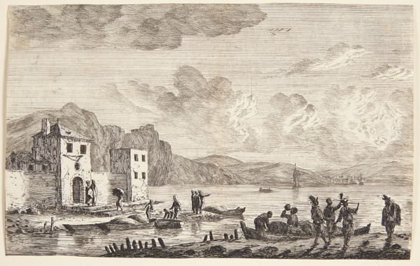 Elizabeth Murray created this watercolor of the Rhine, rendered in a limited palette of neutral tones, sometime in the 19th century. The composition is divided horizontally: the top half captures the sky and distant mountains in hazy, diluted washes, while the lower half depicts a shoreline with architectural structures and figures in more detailed, darker strokes. Murray skillfully uses the formal elements of line and value to guide our eyes through the landscape. The eye moves from the darker foreground up toward the lighter background, which creates an illusion of depth. The artist’s approach evokes a sense of tranquility, a feeling that emerges from the harmony between the landscape's subdued coloration and balanced structure. Note how the artist uses the economy of line, particularly in the reflections on the water, to suggest the ever-changing qualities of light. In its formal and structural emphasis, Murray’s watercolor invites us to contemplate the relationships between observation, representation, and emotional experience.
