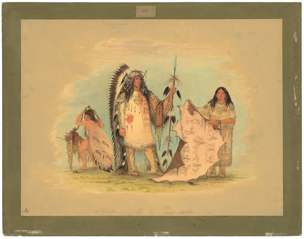 George Catlin painted these three Shoshonee warriors using oil on canvas. Here, feathers denote status, headdresses convey leadership, and painted robes tell stories of valor and tradition. The central figure, adorned with a full headdress, embodies authority and respect. His robe is detailed with figures, possibly chronicling significant tribal events. Consider how such garments echo across cultures – the togas of Roman senators, the robes of medieval clergy – all serving to visually articulate power. Even the simple act of draping a cloth holds symbolic weight, think of classical sculptures, where draped fabric lends dignity and imparts emotional solemnity. This image preserves not just a likeness, but the very essence of a culture facing an uncertain future. These symbols are powerful forces, engaging viewers on a deep, subconscious level, evoking both admiration and a profound sense of loss.