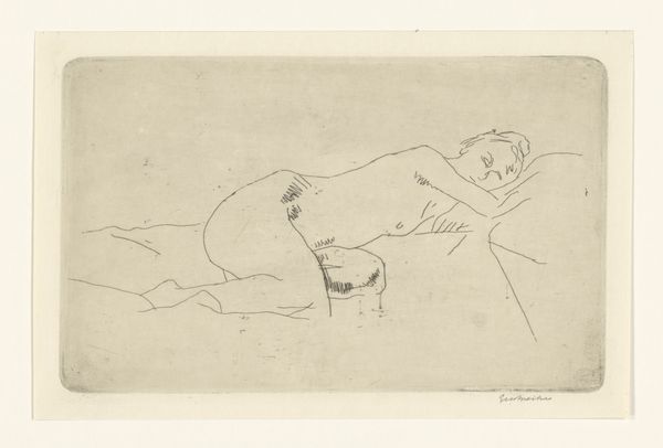 Editor: So, this is "Studies of Nude Dancers" by Odilon Roche, made sometime between 1918 and 1947. It looks like it’s a drawing, maybe watercolor, on toned paper. It's interesting how the figures seem to be floating, almost weightless. What’s your take on this piece? Curator: I find the sketch-like quality compelling. These 'Studies' were produced in a period deeply scarred by global conflict. Consider how Roche utilizes the nude form here, not as a celebration of idealized beauty, but perhaps as a raw, vulnerable expression of the human condition in a world ravaged by violence. Does that initial feeling of "weightlessness" still hold up if we consider it not as freedom but fragility? Editor: That’s a great point. I was initially focused on the aesthetic, but I didn't think about the historical context shaping its message. Does the incompleteness of the sketches tie into that vulnerability, then? Curator: Precisely. The unfinished quality challenges traditional notions of art historical ‘finish’ as representative of status and accomplishment, echoing feminist critiques of a patriarchal art world which emphasizes mastery. This piece subverts that. Where do you think this lands within contemporary discourse on the nude figure? Editor: Well, the female body has become a site of empowerment for many artists, moving away from passive objectification, and the 'incomplete' quality can underscore the importance of resisting limiting expectations that can become oppressive. Curator: Absolutely! It also prompts us to think about what it means to see, who gets to look, and how power dynamics inform representation. Editor: That's fascinating. I'm going to have to rethink my initial impressions and explore the artist more to dig into these intersectional themes. Curator: And I am struck anew with the realization of how historical trauma can resonate so deeply even within seemingly simple forms. Art history offers itself up as an active voice in broader societal and ideological conflicts.