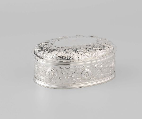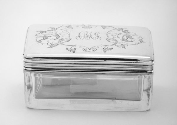 This crystal box was made by Johann Bernhard Hertz, though we don't know the exact year. The base is made of clear crystal, while the lid is silver. Consider the inherent qualities of these materials. Crystal, prized for its clarity and ability to refract light, evokes luxury. The silver lid, with its engraved floral decorations, complements this sense of refinement. The making of this box would have required specialized skills, with glassblowing forming the crystal, and silversmithing used for the lid. Both of these materials and processes speak to their social context. Silver, particularly, has always been associated with wealth. The amount of work involved in the production process, from the initial extraction of raw materials to the final polishing, suggests a significant investment of labor. By understanding how it was made, we recognize the artistry and understand the cultural values that shaped its creation.