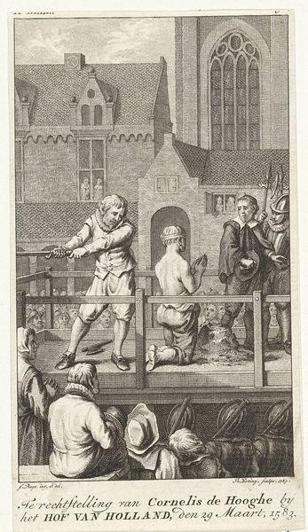 Editor: So, here we have Jacobus Buys' "Decapitation of the Engraver Cornelis de Hooghe" from around 1787-1789, done in ink on paper. I have to say, it's quite striking. The almost casual depiction of such a brutal scene is what stands out the most. What's your take on this? Curator: Well, darling, it makes you wonder about Buys' mindset, doesn't it? Imagine him, sipping his tea, and then meticulously rendering this moment of high drama. But let’s dig deeper. Neoclassicism was all about order, reason, and emulating the greats. Here, though, the subject is anything *but* orderly. The precise lines almost amplify the horror, don’t they? Are we meant to admire the composition or recoil from the event? Or perhaps both? Editor: It is unsettling how clean the lines are, considering. What about the choice of using ink on paper? Curator: Good question! It speaks to a tradition of documentation, like an official record…but done with the flourish of an artist. This wasn’t a quick sketch; it’s a carefully considered statement, or perhaps more precisely, a commentary masked as documentation. Ink offers precision but lacks the softening effects of, say, oil paint. The starkness mirrors the finality of the execution. Cruel, perhaps? What do you think of that contrast? Editor: The "statement masked as documentation" definitely gives me a lot to think about. Curator: Yes, isn’t it scrumptious? The drama, the history, all served on a platter of perfectly rendered lines! It is really something else. So, what’s the big takeaway for you from looking at this piece? Editor: I think that there's so much in it that might get overlooked on the first pass. So thanks for the layered explanation. Curator: My pleasure, dear. Every artwork is like a layered cake of meaning!