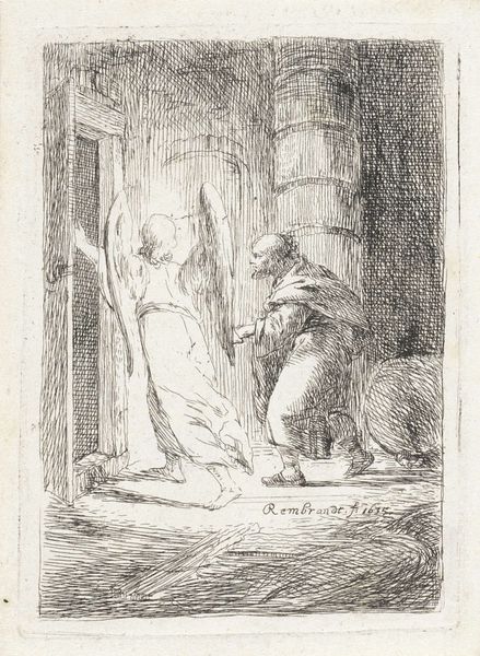 Editor: So, this is Thomas Stothard's "Leander," a small pencil drawing. The figures seem caught in a moment of desperate action, set against a vaguely defined seascape. What can you tell me about the process that might have been involved in its making? Curator: The sketch reveals a fascinating interplay between material scarcity and cultural narrative. Note the hasty execution of the pencil strokes. What does the artist’s choice of such a readily available medium suggest about the intended function and audience for this piece? Editor: Maybe this was intended for mass production in some way, not necessarily as a stand-alone artwork? Curator: Precisely! Stothard's choice speaks volumes about art's accessibility and consumption during his time. It challenges the boundaries of fine art. I've learned to consider the economics of art production, thanks to your insights. Editor: Me too. It's interesting to think about how the materials shape our understanding.