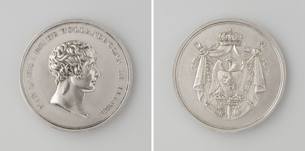 This is a silver medal, made to commemorate the marriage of Willem V to Wilhelmina Frederica Sophia of Prussia. Johan George Holtzhey designed it. Its small scale speaks to its purpose: to be distributed widely. Silver is a relatively precious material, but the medal's value lies more in its design and the skilled labor required to produce it. Notice the crispness of the lettering, and the fine detail in the portraits and allegorical figures. This was achieved using a steel die, a technology that permitted the relatively efficient reproduction of intricate designs on a mass scale. The medal's social significance is clear. It's a piece of political communication, intended to broadcast the importance of this dynastic union, and the power of the House of Orange. Yet the medal is also a testament to the skills of the die cutter, a craftsperson whose work was essential to the circulation of such imagery. By appreciating the labor involved, we can see this marriage medal as more than just a symbol of power.