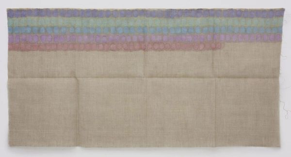 Giorgio Griffa created "Policromo" using acrylic on canvas, a testament to his engagement with the minimalist and conceptual art movements of his time. Born in Italy during the rise of Fascism, Griffa's life and work reflect a questioning of established orders, seen in his radical approach to painting. His simple, repetitive marks challenge traditional notions of artistic skill and representation. The canvas, raw and unprimed, becomes a space where color and line interact, free from the constraints of narrative. Griffa’s work encourages a focus on the pure elements of painting. The emotional resonance of "Policromo" lies in its quiet simplicity, inviting viewers to find beauty in the subtle variations of color and texture. It’s as if Griffa is asking us to reconsider what we value in a world often cluttered with noise and excess.