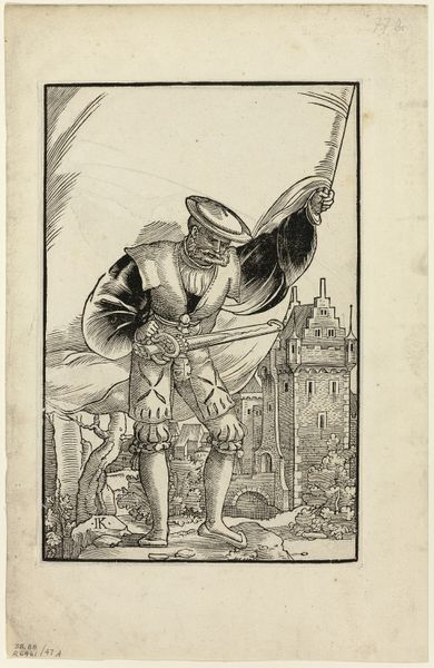 Editor: Here we have "Tiende eeuw", which translates to "Tenth Century," an engraving made anonymously between 1667 and 1672. The image depicts a figure constructed of armor, but rather than an empty suit, it's populated with various scenes and figures, almost like an illustrated timeline. What jumps out to me is how the armor symbolizes a kind of container for history, each piece holding specific moments or figures. What do you see in this piece? Curator: Indeed, it's fascinating how history is being presented here. I see this print operating on several levels within its socio-political context. Notice the explicit connection of historical figures with the decades across the body, suggesting an evolution visualized. In seventeenth-century Europe, there was a huge burgeoning of popular print culture. I think the image served to reinforce narratives, who got to be IN that armored body and therefore the story of the century? Consider, who is left out? Editor: That makes me wonder about the target audience for this kind of piece. Were these widely circulated and accessible, or intended for a more elite, educated group? Curator: That’s the key question, isn't it? The presence of text indicates literacy as a prerequisite for fully understanding the narrative. However, the symbolic representation would certainly have had some appeal to a broader public, perhaps sparking curiosity and further discussion within communities. What effect does using the cuirassier's armor to create this symbolic and narrative tool? Editor: I hadn't really considered it like that before. Thanks, that makes the social message more visible. Curator: I’m glad to bring it to your attention; hopefully you understand my intentions and analysis. Editor: Thank you, Curator. That was insightful, it has provided another angle that I can consider when looking at art.