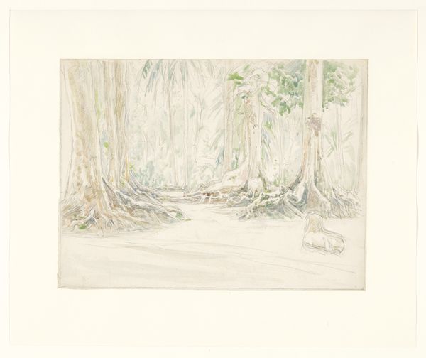 Curator: Stepping into this gallery, we encounter Anna Syberg's "Orkideer, Botanisk Have, Pisa," created in 1913. It's a watercolor drawing that captures a moment within a botanical garden. Editor: Immediately, I'm struck by this hazy, almost dreamlike quality. It's as if the colors are whispering secrets only the orchids understand. Not what you expect from botanical art, it’s more emotive. Curator: Syberg, wife of fellow artist Fritz Syberg, often depicted scenes from her domestic life and travels. This work reflects the post-impressionist interest in capturing fleeting moments and personal experiences within nature. Botanical gardens, especially in places like Pisa, were sites of both scientific study and artistic inspiration. Editor: Exactly! She’s not just painting orchids. She's painting the humid air, the filtered sunlight, and this feeling of… hushed awe. There's an intimacy here. You can almost smell the damp earth and the sweet fragrance. It makes you want to linger. The slight tilting of the work lends to the composition a casual elegance. Curator: The composition guides our eye from the foreground, filled with detailed depictions of the orchid blooms, back into the blurry depth of the botanical garden. The brushwork, so typical for her impressionistic rendering, emphasizes spontaneity and her sensory perception over realism. Her position within the Funen artists' colony might've certainly added some influences in her approach. Editor: And those muted tones... the soft greens, faded yellows, the almost ethereal white... it feels nostalgic, like a cherished memory fading slightly around the edges, becoming somehow, dearer, richer. The color usage feels ahead of its time, like someone dabbling into a new emotional register of expression. Curator: Syberg's "Orkideer" occupies a unique place in the artistic and botanical currents of its time. It challenges the traditional art and botanical approaches. The popularity of botanical garden rose in the beginning of the century shows also how Syberg and her contemporaries, portrayed in the scene some type of escapism. Editor: It does that so wonderfully. Thanks to Anna Syberg for letting us peek through the greenhouse glass and lose ourselves. Curator: A truly insightful moment encapsulated, wouldn’t you say?