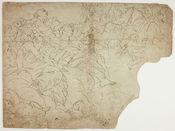 Luigi Garzi created this drawing, Adoration of the Host, using pen and brown ink with blue wash on cream laid paper. Garzi was a leading painter in Rome during the late Baroque period, a time when the Catholic Church was a major patron of the arts. The sketch shows God the Father above the Eucharist, surrounded by angels in a celestial scene. The angels, rendered as idealized, almost feminized figures, are caught in a moment of rapture and reverence. But who is included, and excluded, in this vision of the divine? The figures seem to exist outside of earthly concerns. Although Garzi created many works of art, much about his personal life and beliefs remain a mystery, inviting us to ponder the cultural norms that shaped his artistic vision. In a world where representation was often dictated by powerful institutions, Garzi’s "Adoration of the Host" can serve as a reminder of the complex interplay between faith, power, and the artistic imagination.