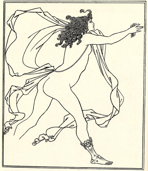Aubrey Beardsley made this pen and ink drawing, Cinesias Entreating Myrrhina to Coition, sometime in the 1890s. It is a work made with simple materials, but great skill. The stark contrast of black ink on white paper gives the artwork a striking visual impact, typical of Beardsley's style. Look at the fineness of the lines he used to create intricate patterns on Myrrhina's robe. It gives a sense of opulent fabric. The bold, confident strokes define the figures and the dramatic scene. The flatness of the printmaking medium is subverted by his exquisite cross-hatching to give the illusion of depth and shadow. Beardsley was part of the Aesthetic movement, which valued beauty and artistry above all else. With an interest in Japanese art, he embraced new printing technologies to distribute his art widely. This drawing challenges the traditional hierarchy between fine art and illustration, demonstrating how technical skill and artistic vision can elevate even the simplest materials. It's a reminder that the value of art lies not only in the materials used, but also in the labor, skill, and cultural context that shape its creation.