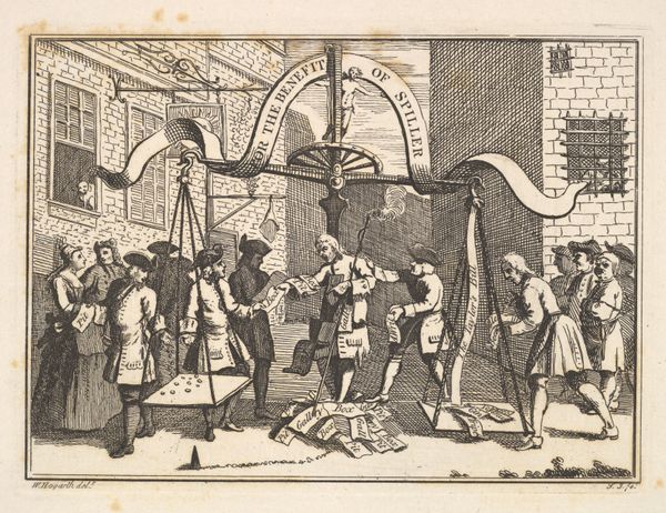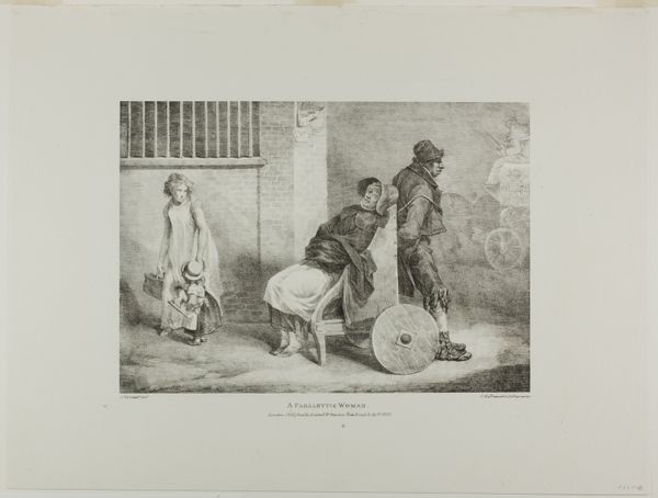 Jean Duplessis-Bertaux created this print called ‘Colleur,’ or Billposter, using etching. The image shows a billposter at work, pasting announcements onto a wall in what appears to be late 18th century France. Here, Duplessis-Bertaux captures a slice of everyday life and work, elevating it to the level of art. We can see a hierarchy in the image, between the working-class billposter and the well-to-do onlookers on the right, distinguished by their dress. This image subtly comments on the rigid social structures of the time. As a work of art, it reflects the growing importance of public communication through printed media and the labor involved in disseminating information. The work is a valuable historical record and a commentary on the social landscape of its time. Historians can use sources such as period newspapers, social commentaries, and records of the printing industry to enrich our understanding of this image and its context.