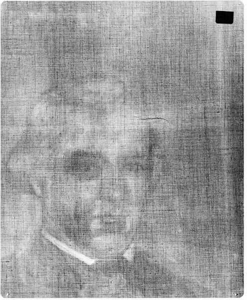 Curator: This is an X-radiograph of John Singleton Copley's "Mrs. Epes Sargent," held at the Harvard Art Museums. Editor: It's like an archaeological dig into the canvas itself! I immediately notice the weave and the ghost-like presence of the subject. Curator: Indeed. The X-ray reveals the underpainting, highlighting Copley's meticulous layering and adjustments to the composition. Note the sharp contrast. Editor: It makes me think about the labor involved, the preparation of the canvas, the grinding of pigments, the entire material process usually hidden from view. Curator: Precisely. The X-ray peels back layers of representation, allowing us to analyze the structure beneath the surface. Fascinating, the unseen architecture of art. Editor: It's a reminder that even the most seemingly effortless portrait involves immense work and that "art" itself is a complex, multi-layered object of labor. Curator: A powerful dialogue between visibility and invisibility. It re-contextualizes our notions of portraiture and artistic construction. Editor: Absolutely. It prompts a reflection on the art-making process, moving away from the mystique of genius and toward the tangible realities of creation.