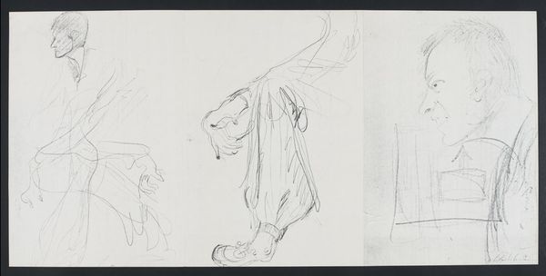 Editor: We're looking at "Psalms," a 2009 drawing by Dmytro Kavsan. It's rendered in pencil, depicting figures in two distinct vignettes. I’m immediately struck by how much the simple line work conveys such raw emotion. What do you see in this piece? Curator: As a historian, I see these vignettes as reflections on human vulnerability within the landscape. The starkness of the medium, the lack of color, heightens a sense of alienation. Think about how figuration is historically used - often to celebrate power, or beauty. Here, we have a more exposed vision. Does this challenge our notions about the body's purpose? Editor: Definitely. The figures seem to be either struggling against something, or desperately seeking shelter. Is it trying to tell us that human condition is about resistance and faith, in this contemporary setting? Curator: Possibly. Kavsan's choice of 'Psalms' as the title encourages religious interpretation. We might think about Psalms not just as prayers, but as expressions of human emotions, from lament to praise. Kavsan is inviting a broader consideration about the public display of feelings through the imagery in 21st century. How do we engage and respond to these representations of emotion and human interaction? Editor: That makes me rethink my initial read as purely individual struggles. Seeing it as public expression changes everything. Curator: Precisely. Consider how contemporary drawing serves to show emotions, contrasting the cultural role that art assumes within the present world. Editor: This gives me a lot to think about – how a simple drawing can open up larger conversations about the individual, society, and our place within it. Thanks! Curator: My pleasure. Reflecting on this drawing with you highlights how contemporary artists negotiate this tension.