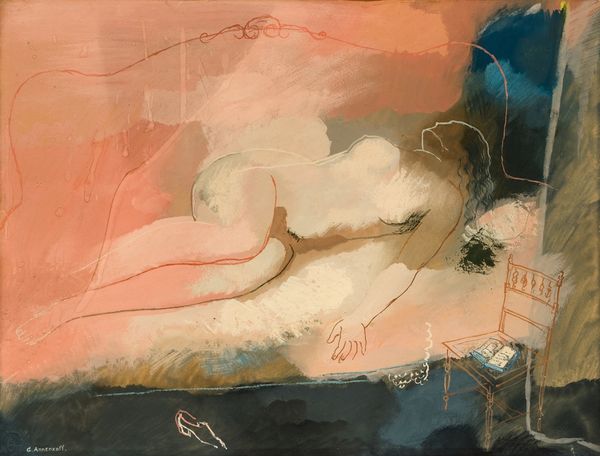 Cyprián Majerník made this Reclining Nude using watercolour on paper, and its all about the process of seeing as a form of touching. There’s something so vulnerable about the thin washes of colour here. The way the peach and rose tones just barely cling to the paper, like a blush. The dark line used to define the shape of the body is almost apologetic – it feels like Majerník is feeling his way around the subject, mapping its contours with tentative strokes. Look at the area where the figure's thigh meets the bed. See how the red bleeds softly into the surrounding flesh? It’s like the body is merging with its surroundings, losing its sharp edges, and becoming one with the space it occupies. This piece reminds me of a looser, more intimate version of some of Bonnard's interiors. But where Bonnard uses colour to create a kind of shimmering surface, Majerník is after something rawer, more immediate. He’s interested in the act of seeing itself, in the way light and shadow can transform a body into something almost abstract. It's a reminder that art is always a conversation, a dialogue between artists across time and space, and a search for meaning.