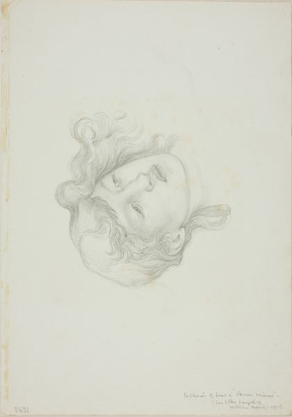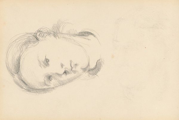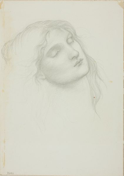 Editor: Here we have Otto Scholderer’s "Head of a Reclining Young Woman," a pencil drawing from around 1892. It strikes me as incredibly intimate, almost melancholic in its quiet stillness. What do you see in this piece, considering its historical moment? Curator: What I find compelling is the implied narrative of female subjectivity within a rapidly changing socio-political landscape. This was a time when women were increasingly pushing against traditional roles. How might her closed eyes and relaxed posture be interpreted as a form of quiet resistance or perhaps an escape from the societal expectations placed upon her? Do you think the artist sought to portray something beyond mere physical likeness? Editor: That’s a really interesting perspective. I hadn’t considered it as an act of resistance, more as a simple portrait. But thinking about it through that lens, maybe the refusal to meet the viewer's gaze is significant. Is there anything about the artist's own life or other works that speak to that interpretation? Curator: Scholderer existed within a milieu where traditional academic art was being questioned. While he wasn’t at the forefront of radical artistic movements, his choice to focus on an intimate, interior moment invites a consideration of the sitter’s inner life, a space often denied to women in public discourse at the time. Considering the rise of feminist thought around the same time, do you feel that art began mirroring some of these debates around gender? Editor: It's fascinating to consider. It makes me wonder what her life was like, and what Scholderer was trying to communicate beyond just her likeness. I initially saw it as a straightforward sketch, but I can see now how its historical context complicates and enriches its meaning. Curator: Exactly! And hopefully it inspires others to contemplate art not as isolated objects, but as participants within crucial dialogues about identity and power.