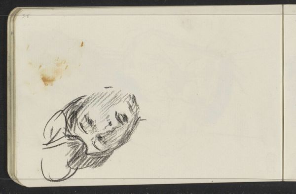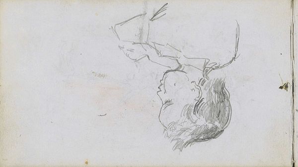 Curator: Here we have Jozef Israëls’s pencil drawing, “Koppen van twee meisjes en een schrijvende hand,” created sometime between 1834 and 1911. Editor: It strikes me as more a collection of fleeting impressions than a formal portrait. There's a dreamlike quality to the scattered compositions across the page. Curator: Yes, it is precisely the interplay of light and shadow rendered so skillfully with just pencil on paper that allows for that impression. Note the circular composition, it's rather unorthodox and free from standard conventions. Editor: Do you think this captures Israëls’s engagement with his immediate surroundings? These images almost feel lifted from a personal journal rather than an academic project, especially the small writing hand. Curator: Considering the historic conventions that Israëls’s style reflects, the sketch provides evidence of academic interests in portraiture alongside studies in human figuration within the space. There's a clear attention to classical lines of structure in the human figure itself, the neck, the angle of the nose, each conveys a level of mastery. Editor: Agreed, it’s undeniably informed by the artistic values and styles of his time, especially concerning portraiture conventions, while capturing something unstudied. Could the looseness perhaps have been a conscious effort? Or are the images of women presented as idealized types within social spaces? Curator: The lack of specific detail allows the subjects to transcend any immediate context. We aren't meant to know these figures specifically, instead focusing on shape, angle, and tone, as a practice piece is apt to promote. Editor: This all lends to the artwork's lasting effect. Looking at the play of light, shadow, form, and content that seems more valuable here. It seems that studying the drawings like this provides us with deeper knowledge of art's value across time. Curator: I concur. By considering it through these lenses, it illuminates not only the nature of Israëls' creative processes but also speaks volumes about drawing and the potential for human connection.
